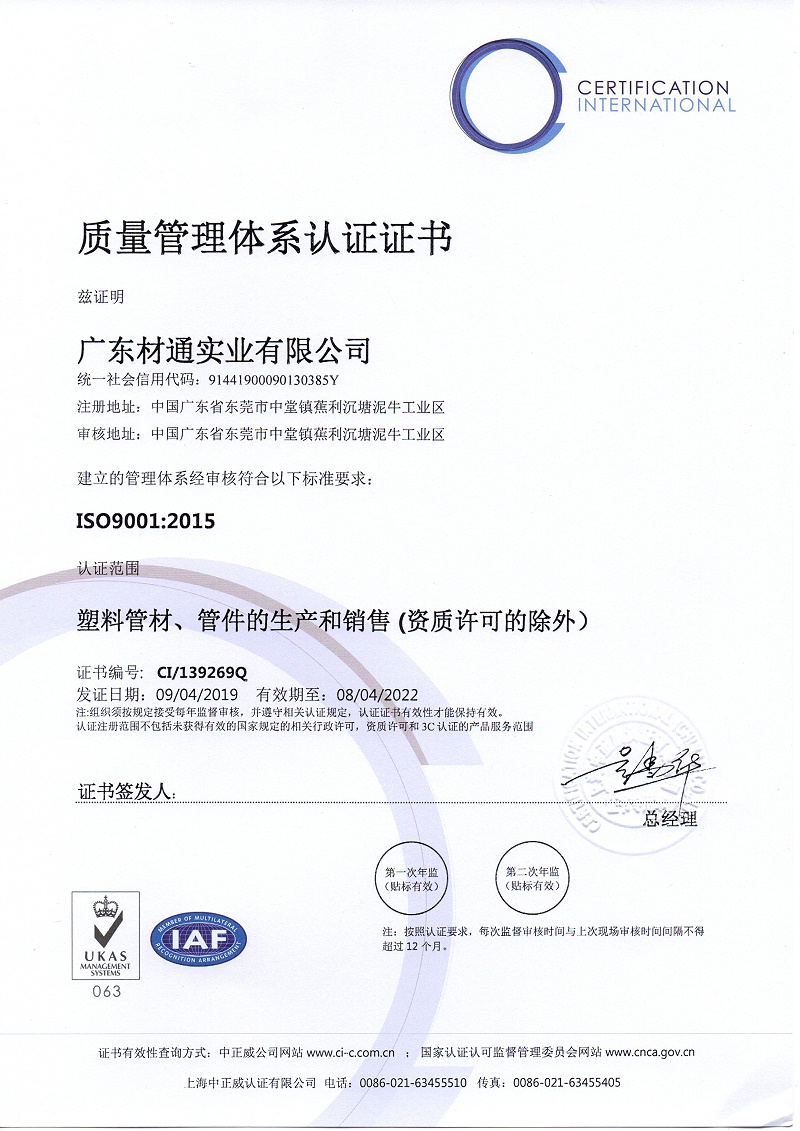 材通管業ISO證書